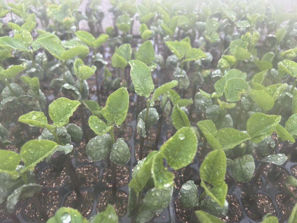 荒木農園では、今年は約10,000株の黒大豆の苗を、手間を惜しまず丁寧に播種しています。