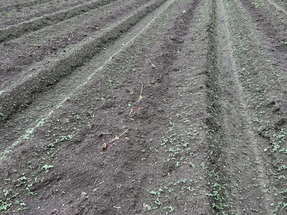 以上を注意しながら機械と手作業を組み合わせながら、丁寧に畝づくりを進めています。