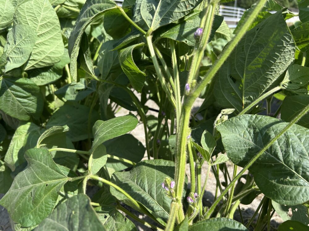 7月の終わりごろから、黒大豆がついに開花を迎えました。