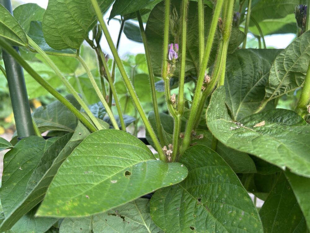 黒大豆は、花が散りさやを付ける準備を始めるとても大切な時期を迎えています。