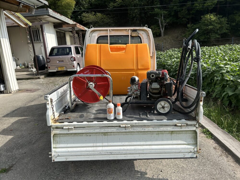 ・散布条件:風の少ない晴れた日に、葉の裏まで一本一本丁寧に薬剤が行き渡るように作業