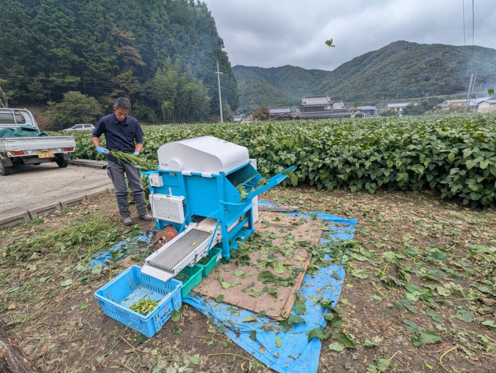 荒木農園の畑でも、黒豆が深い味わいをまとっていくための最後のひと手間、「葉取り作業」が始まりました。