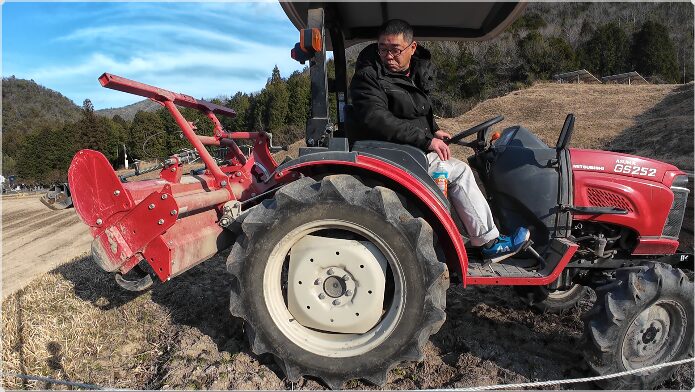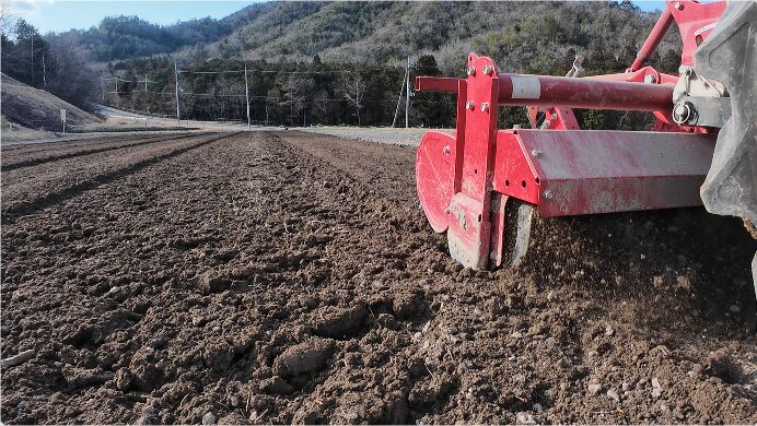 1月には一度、トラクターで畝崩しを行っているため、今回はそれに続く 2回目の耕うん作業になります。