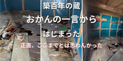 蔵の床の状態を見るために、まず中にあった物をすべて外に出すことにした。埃をかぶった道具や箱を手に取るたび、この蔵が重ねてきた時間を感じながらの作業正直、この時点では、ここまでとは思っていなかった。 蔵の中を、いったん全部 […]