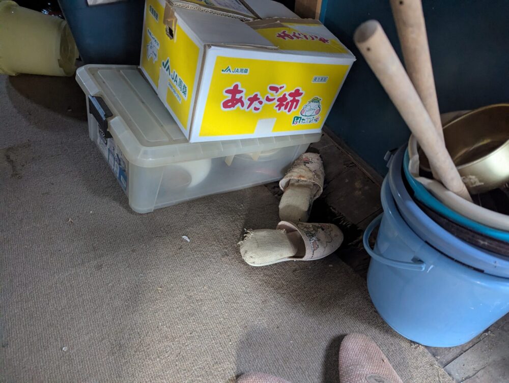 長い年月の中で役割を終えた物も増え、いつの間にか床の傷みが進み、一部では床が抜けている状態になっていました。